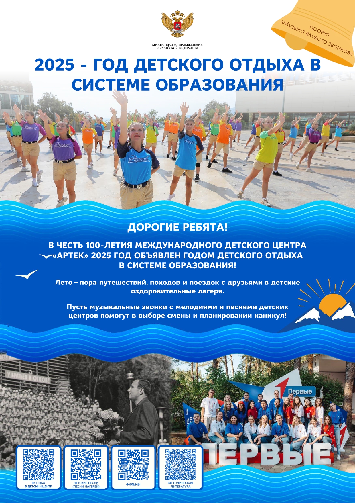 2025 год объявлен Годом детского отдыха в системе образования. В январе 2025 года вместо школьных звонков прозвучат песни федеральных детских центров (детских лагерей).