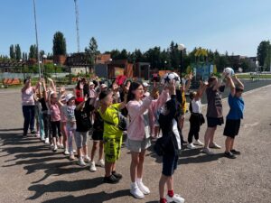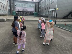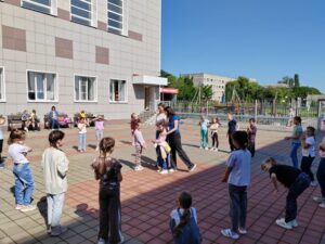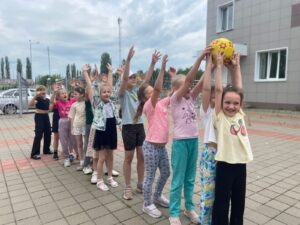 После торжественной части вожатыми была организована всеми нами любимая с детства дворовая игра «Вышибалы».